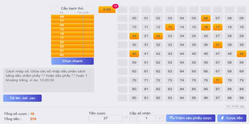 Bạch thủ lô là phương pháp cực kỳ đơn giản và hiệu quả. Người chơi chỉ cần chọn duy nhất một con số và chờ kết quả. Với cách chơi này, bạn không cần phải phân tán vốn vào nhiều con số khác nhau, giúp giảm thiểu rủi ro.